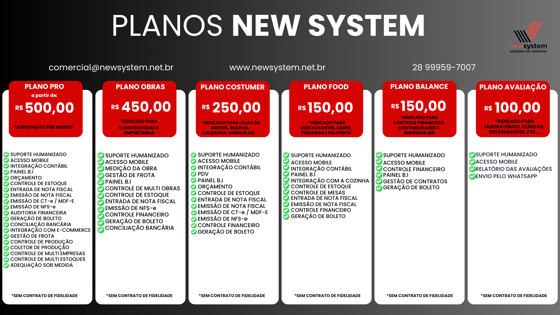 O NewSystem gestão empresarial é um sistema emissor de NF-e desenvolvido para atender todos os seguimentos de empresas por meio de uma plataforma simples e intuitiva, alinhado a um preço justo e acessível.